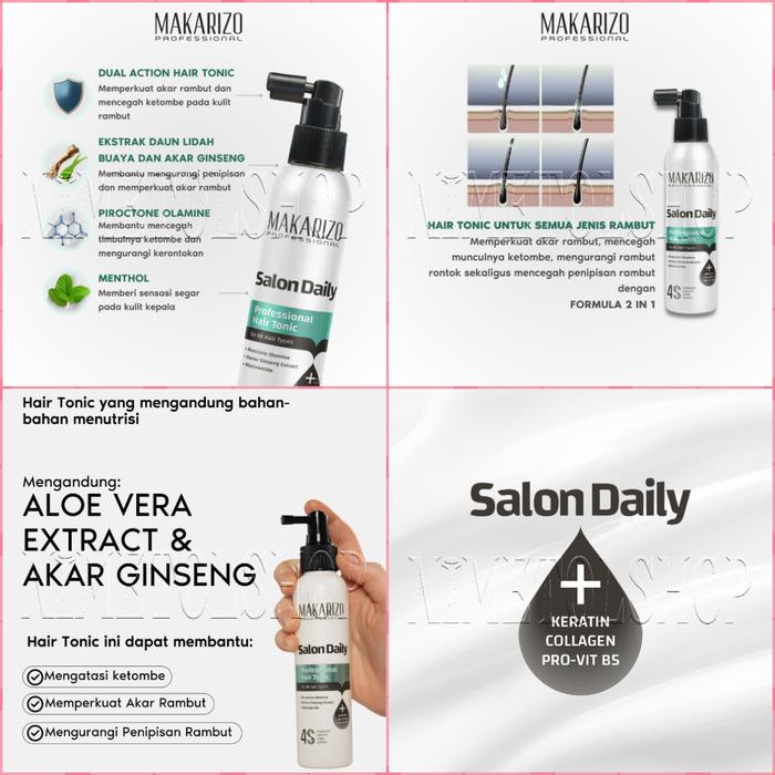 MAKARIZO Professional Salon Daily Shampoo 950ml Rambut Rontok Ketombe Rusak Color Keratin Collagen - HAIR TONIC 140ML