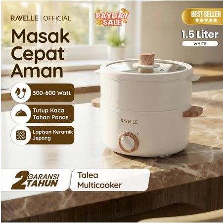 RAVELLE - PANCI LISTRIK MULTIFUNGSI WARMER STEAMER COOKER Multifungsi 1.5 Liter Low Watt