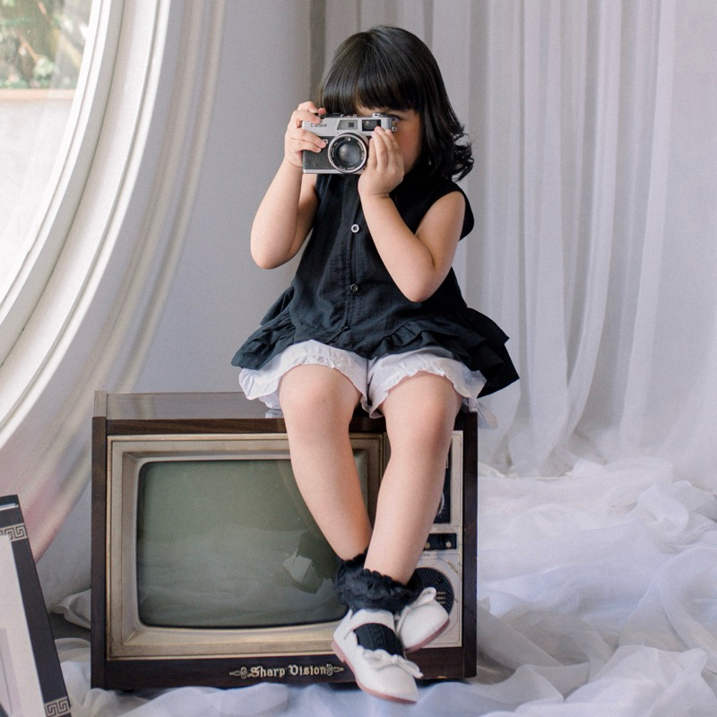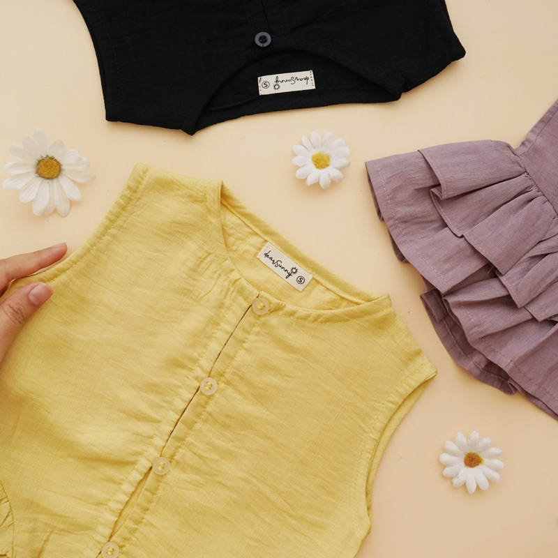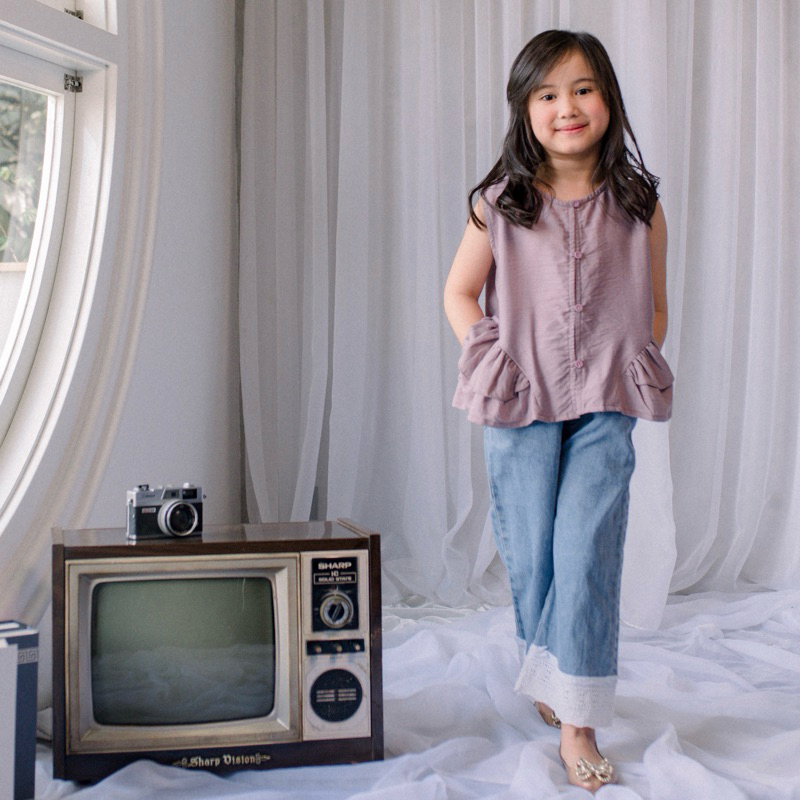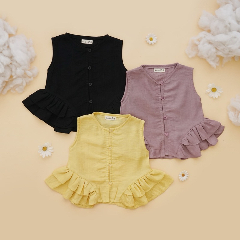 Janie-Atasan Anak Perempuan Polo Linen | Blouse Anak Perempuan Korea | Blouse Anak Perempuan Ruffle | Baju A