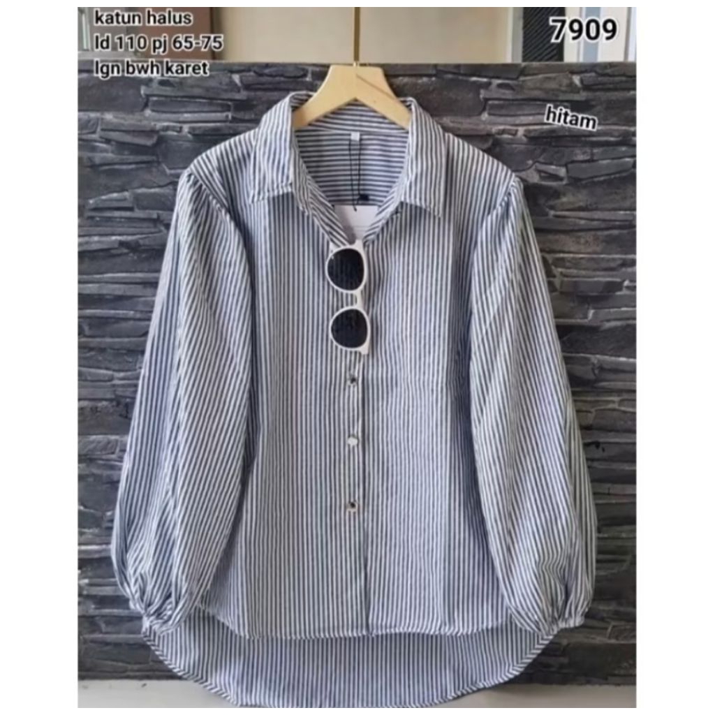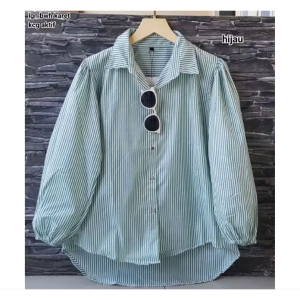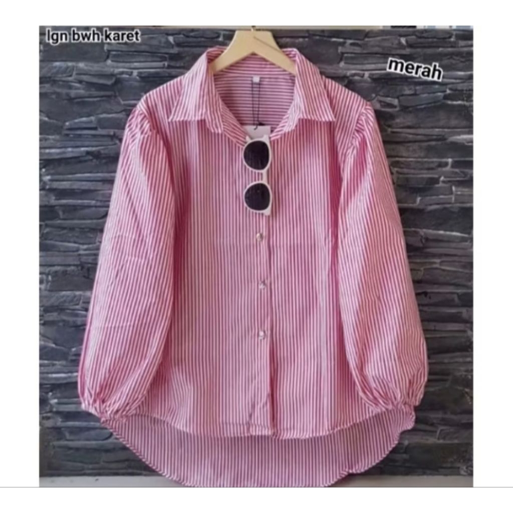 kemeja salur tangan karet/atasan wanita terbaru Murah Gratis Ongkir