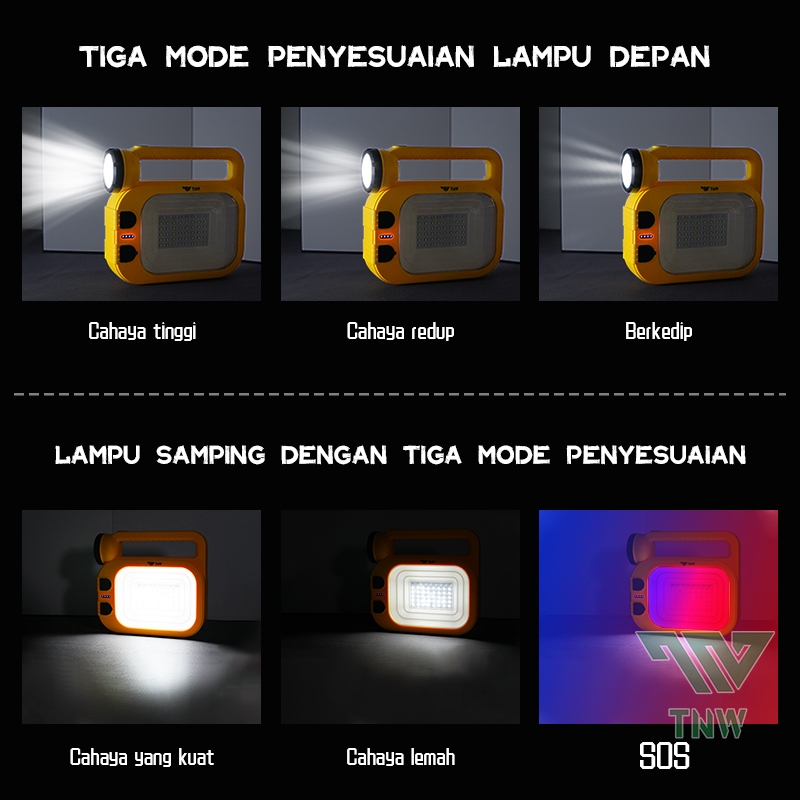 Tnw Ol6 Senter Led Super Terang Portabel Lampu Tenaga Surya Outside Solar Emergency Light 100W Multifungsi Power Bank 60