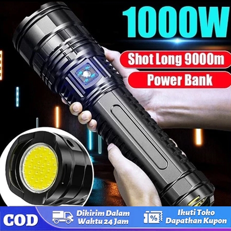 So Senter Led Super Terang 150000 Lumens Jarak Jauh Tahan Air Ip65 Zoom Type-C Rechargeable Senter Swat Police Terbaik W