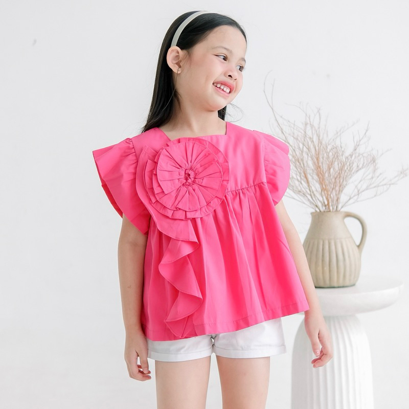 Myura-Atasan Anak Perempuan Katun | Blouse Anak Perempuan Korea | Blouse Anak Perempuan Ruffle | Baju Anak P