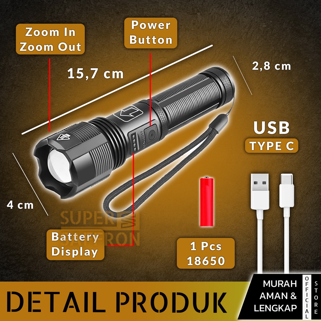 Wewant Senter Swat Super Terang Xhp50 Usb Type-C Led Flashlight Tactical Police Waterproof Outdoor