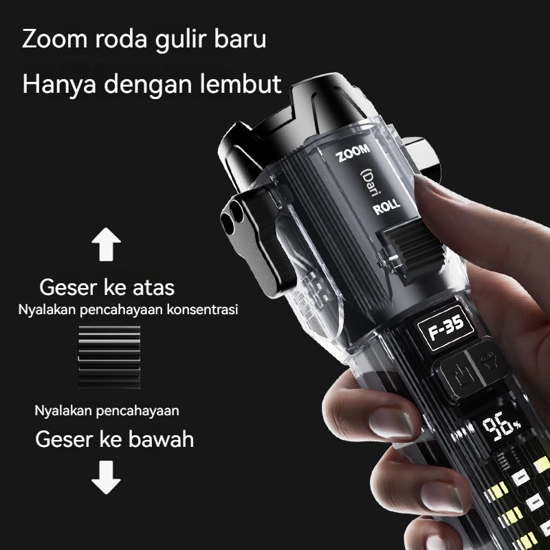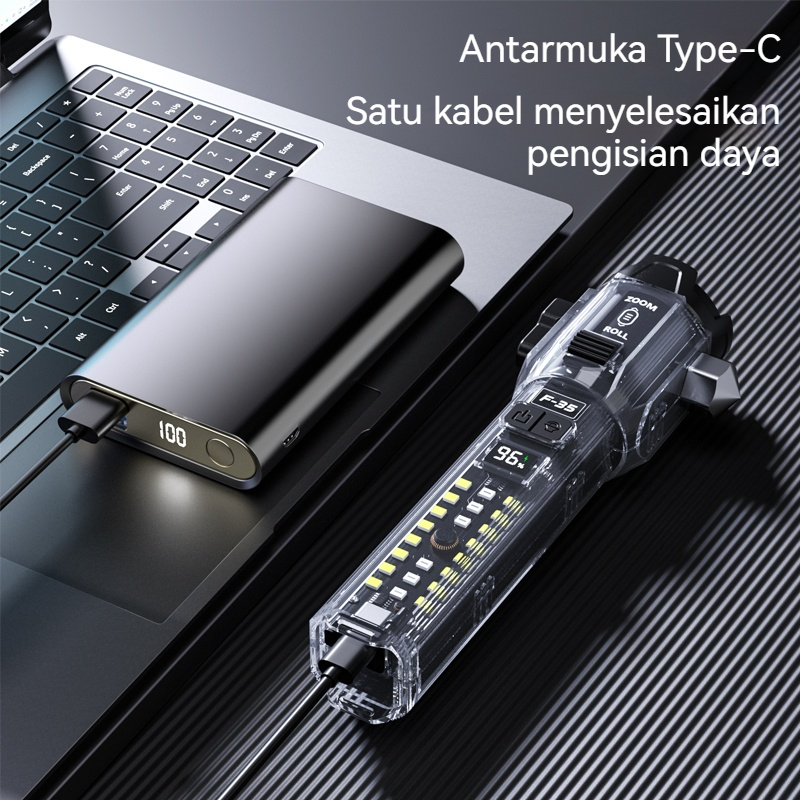 Senter Safety 10 In 1 Led Laser 30W Cas Roll Zoom In Out Hammer Emergency Alarm Multifungsi Lampu Palu Palu Jendela Yang