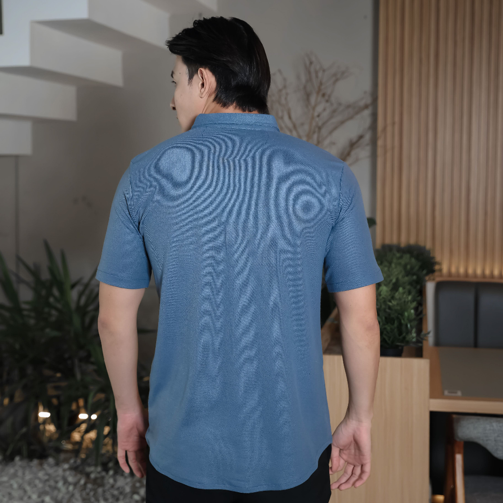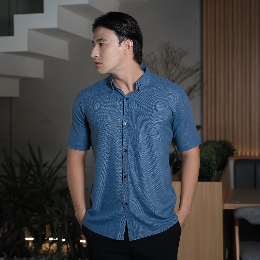 Stylelaki Lapique - Kemeja Denim Pria Formal Lengan Pendek Slim Fit Anti Kusut Nyaman Dan Lembut