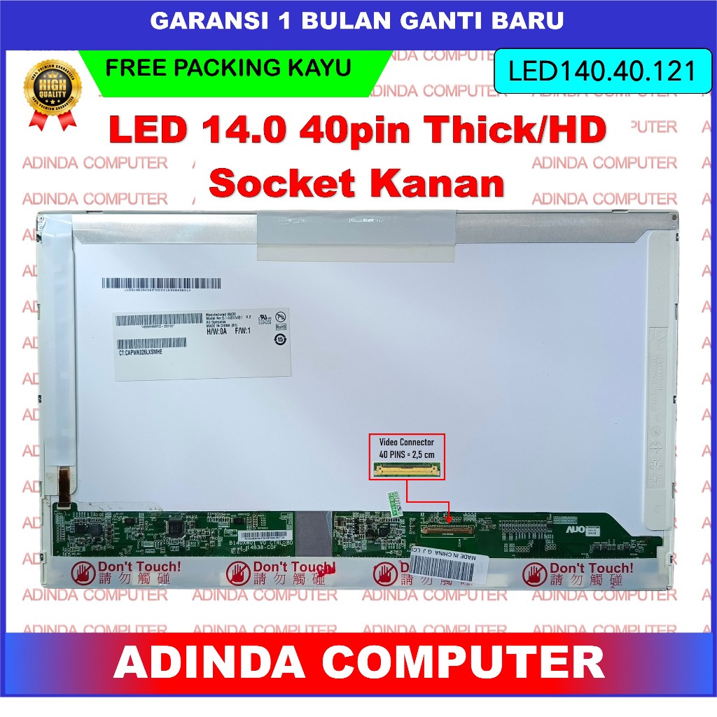 LCD LED Layar Screen 14 Inch 40 Pin Tebal