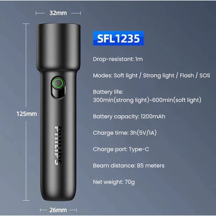 Philips Sfl 1235 Senter Led Philips Flashlight Rechargeable Senter Mini For Camping Hiking