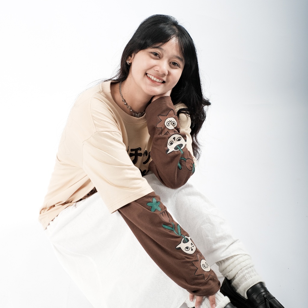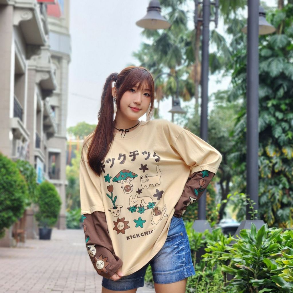 Kickchick Double Sleeve Quirk Cream Brown Kaos Oversize Lengan Panjang Unisex KCDS012 Murah Gratis Ongkir