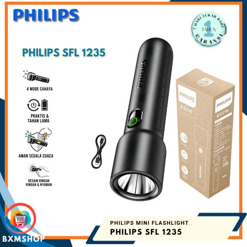 Philips Flashlight Sfl1235 Mini Senter Led Usb Type-C 4 Mode Cahaya Untuk Hiking & Daily Use