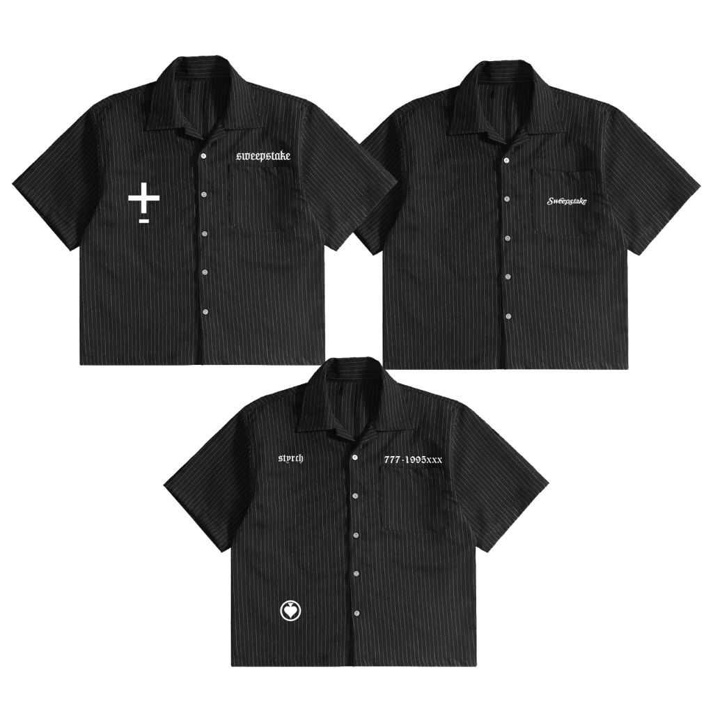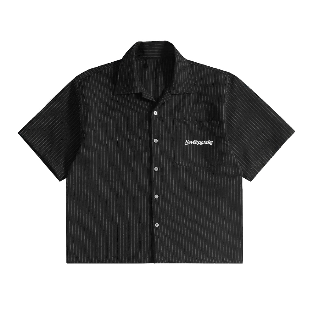 Sweepstake Kemeja Strip STRIPE HITAM Boxy Fit Murah Gratis Ongkir