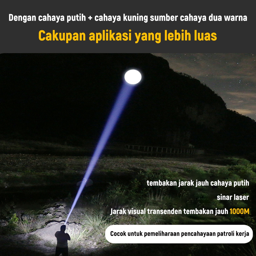 Senter Lampu Depan Led Senter Kepala Zoom Headlamp Lampu Putih Dan Kuning Clowicsr 1500 Lumens Tpye-C Usb Rechargeable 1