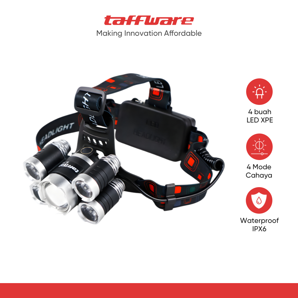 Taffled Headlamp Light Cree Xm-L T6 + 4 Xpe 40000 Lumens