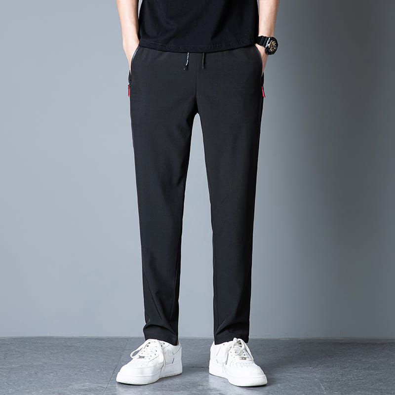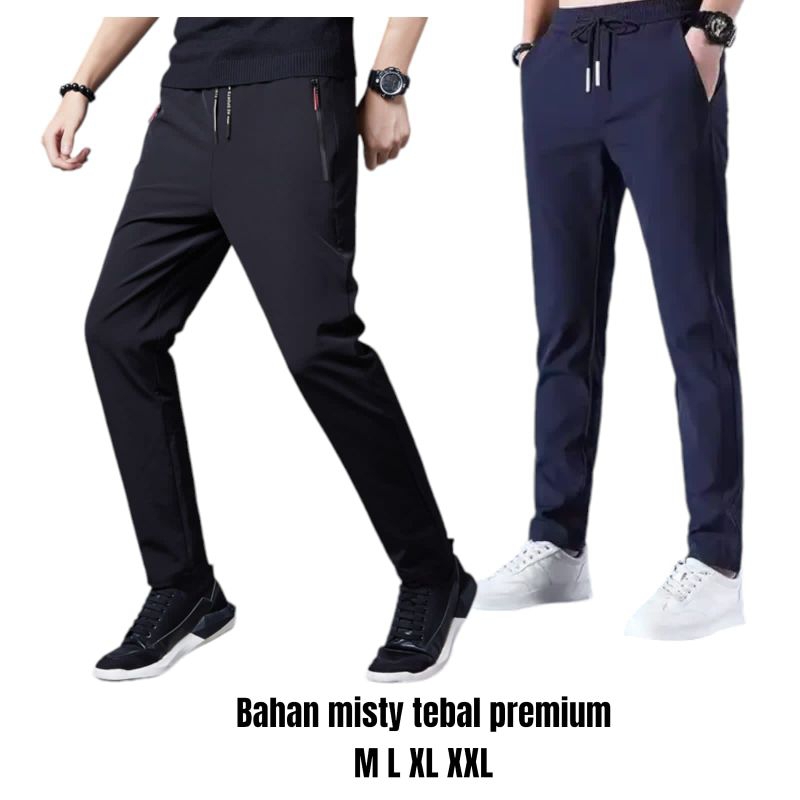 Celana running pria gym jogging aerobic training misty navy hitam tebal elastis
