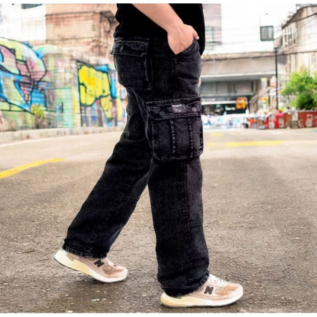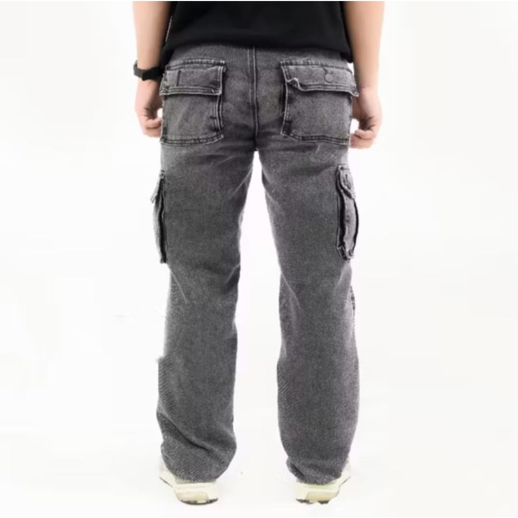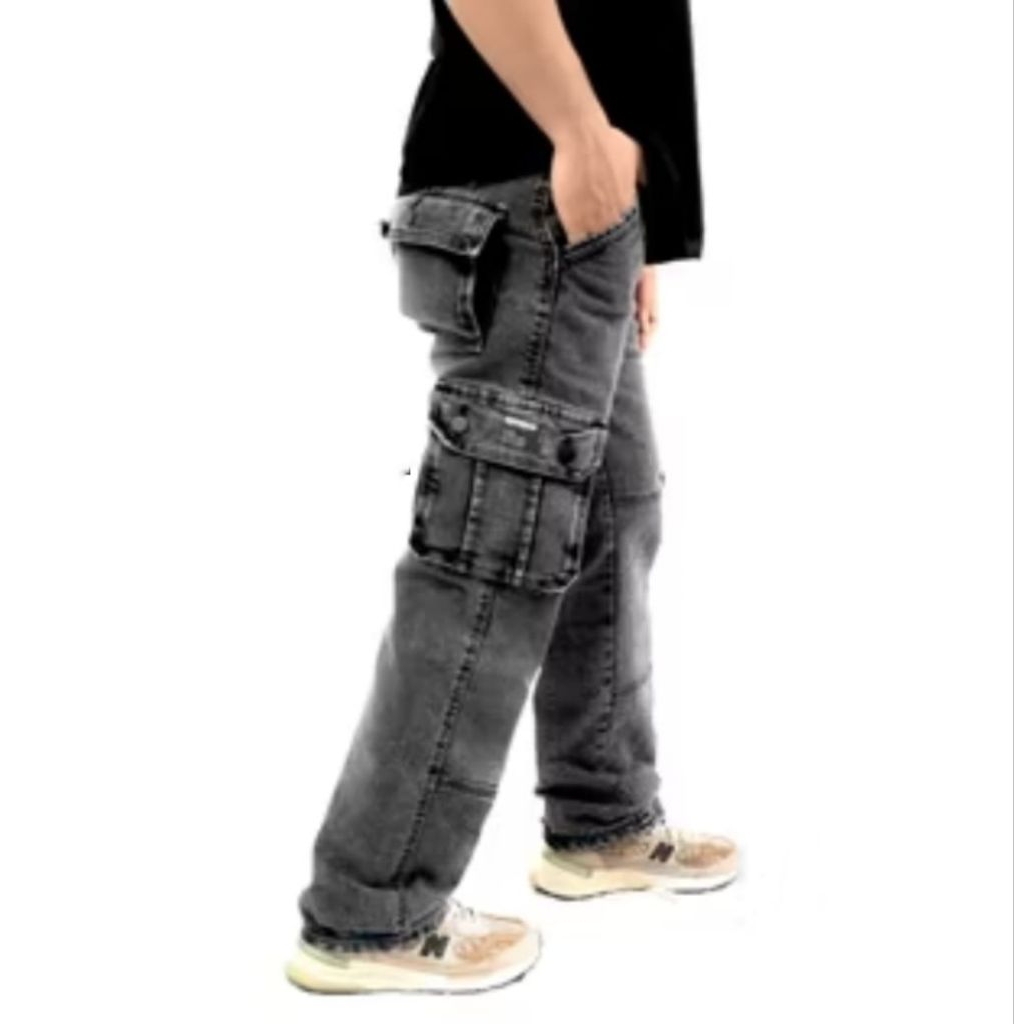 ROLIXSTORE - Cargo Jeans Stretch - Loose Reguler fir Panjang pria Unisex