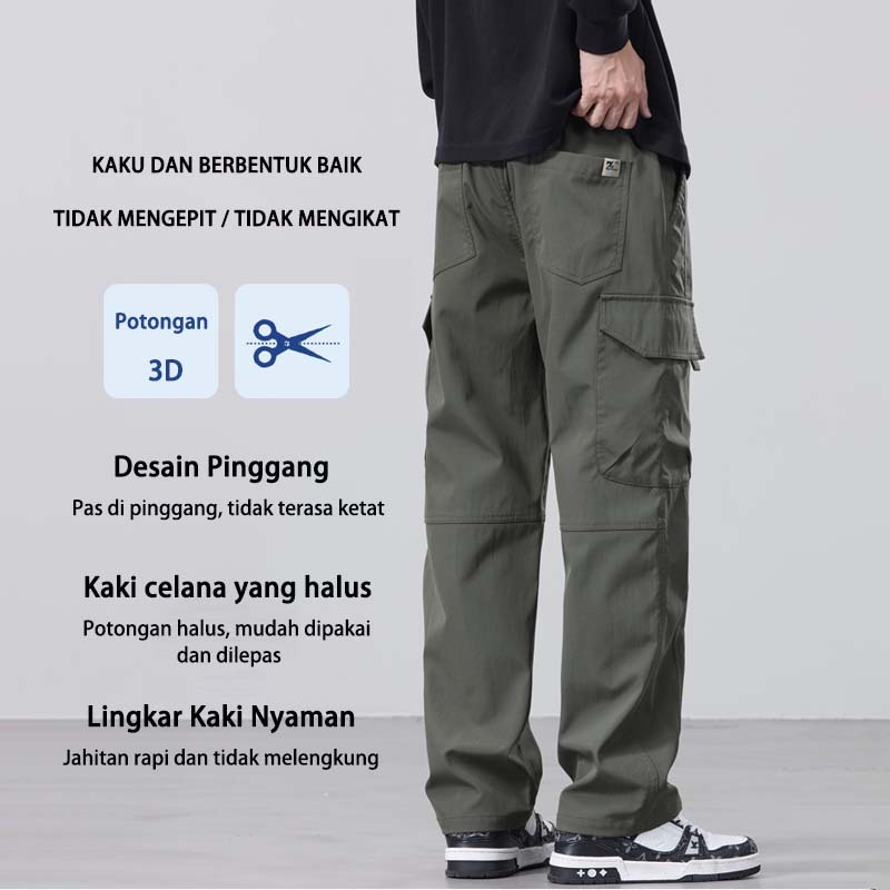 SUYX Celana Cargo Panjang Pria Loose Pants Gombrang Outdoor Celana Cargo Korean Style Celana Pria