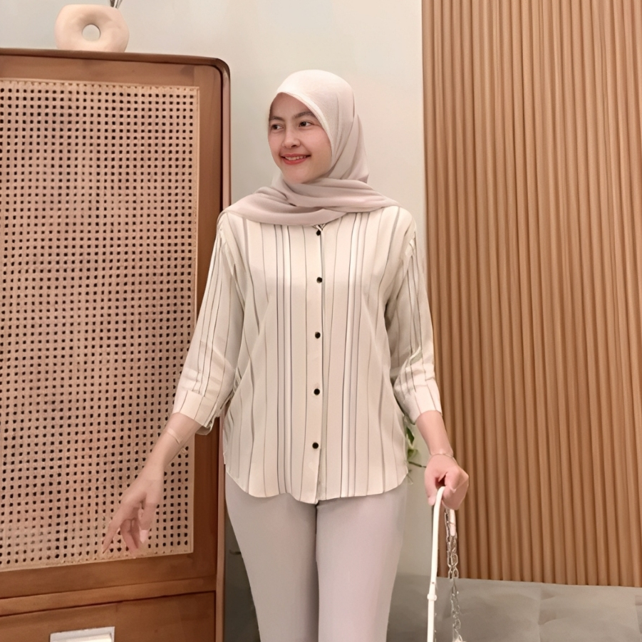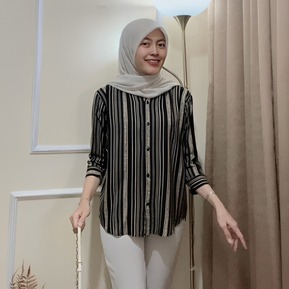 Baju Atasan Wanita / Kemeja wanita Rayon Terbaru Motif Salur Oversize Ld 120 Murah Gratis Ongkir