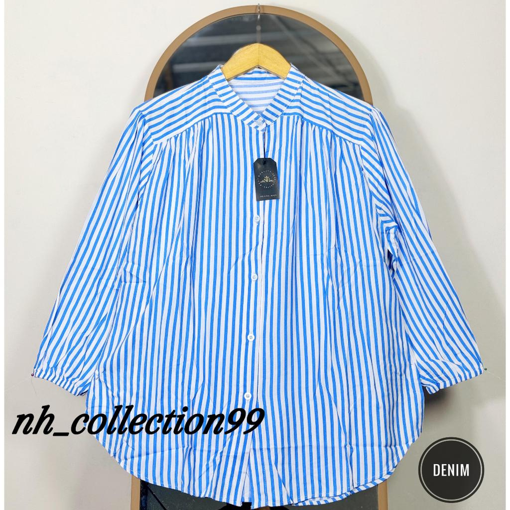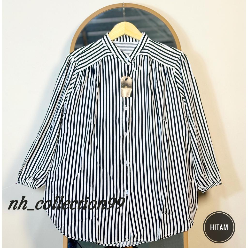 Nh Kemeja Rayon Salur Terbaru Atasan Rayon Wanita Busui Lengan Panjang Murah Gratis Ongkir