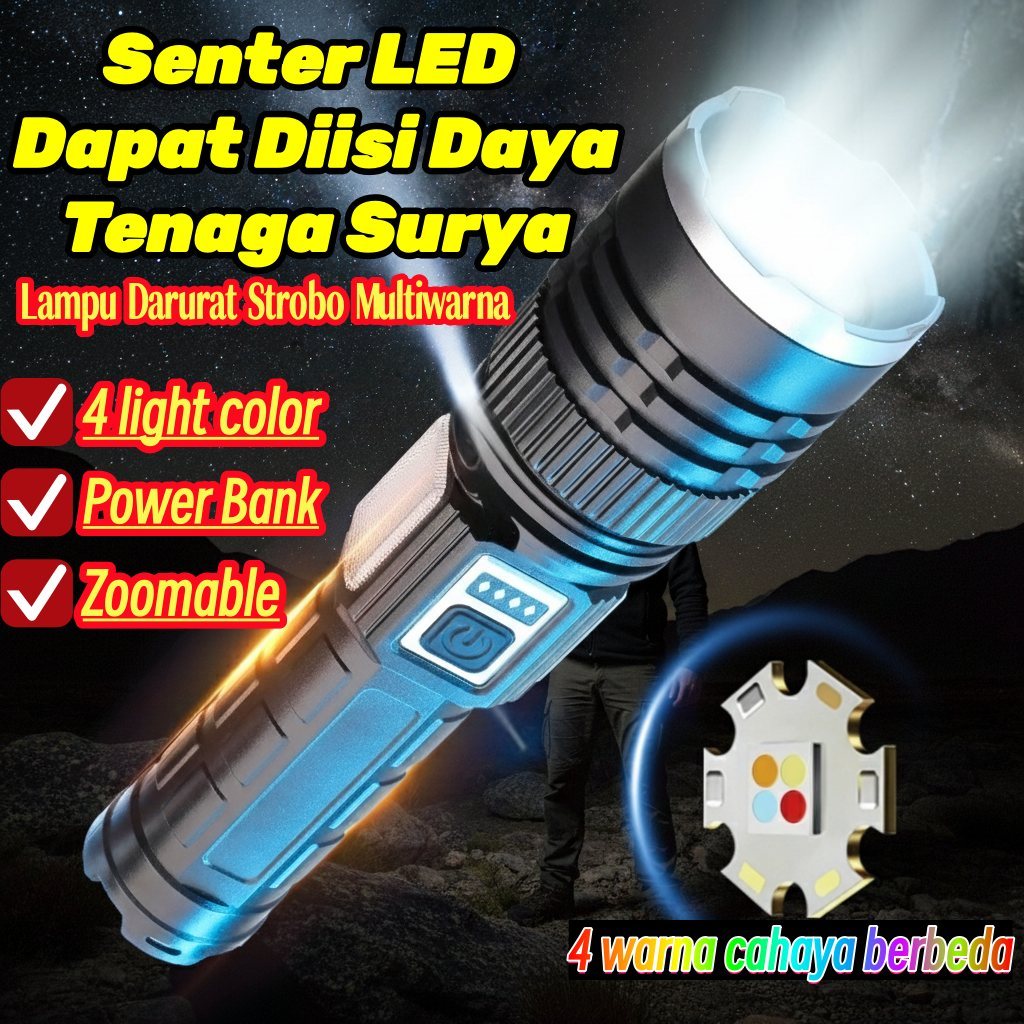 Senter Led Super Terang Tenaga Surya Rechargeable Power Bank - 4 Warna Cahaya, Zoo