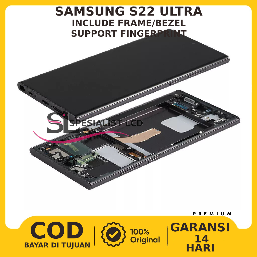 LCD TOUCHSCREEN SAMSUNG S22 ULTRA ORIGINAL SUPPORT FINGERPRINT INCLUDE FRAME GARANSI