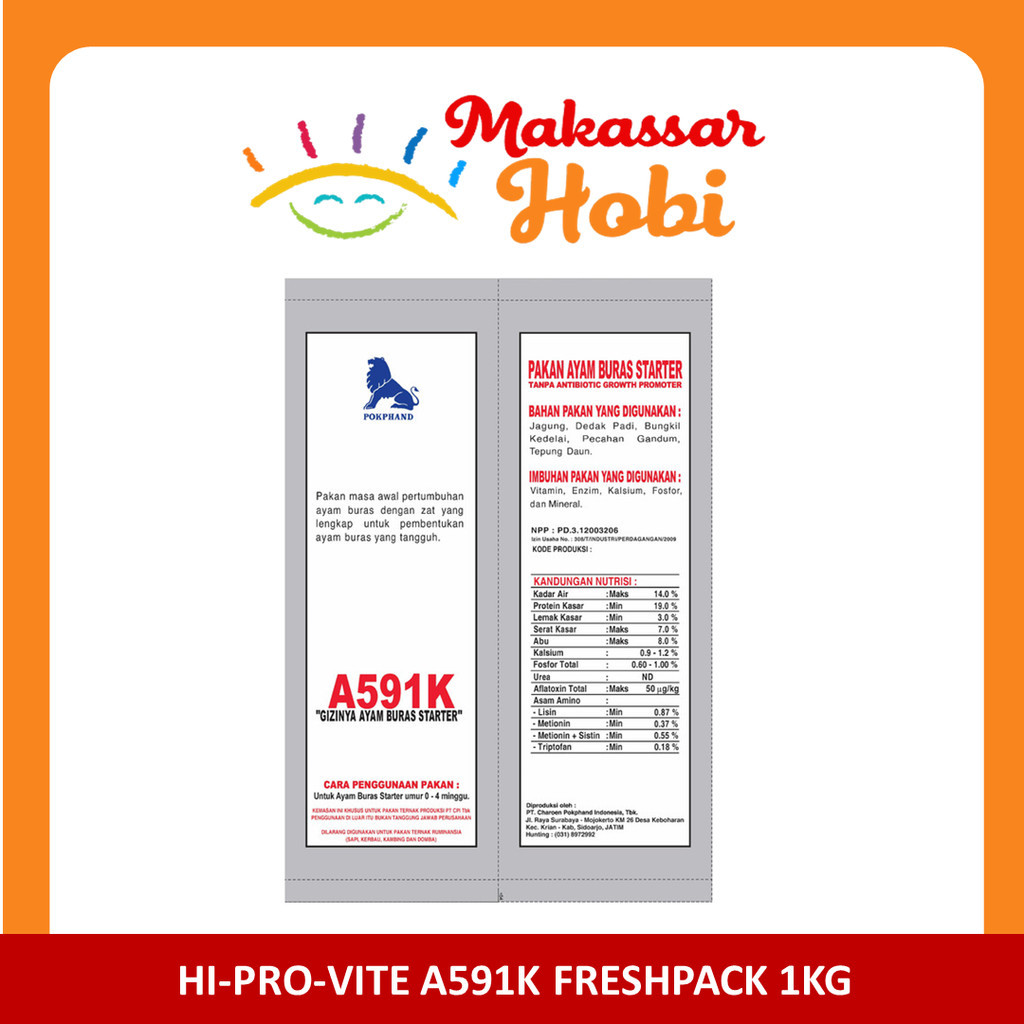 Pakan Ayam Bangkok A591K Hi-Pro-Vite A 591 K 591K Hobi Aduan 1kg 1 kg