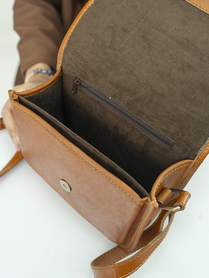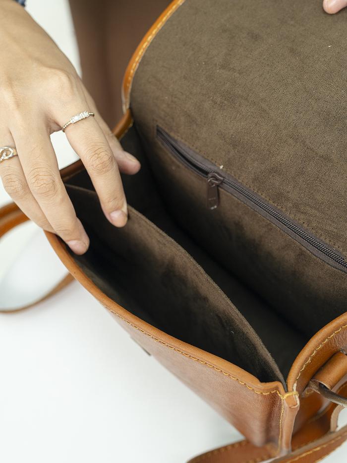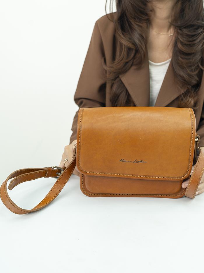 KENES LEATHER SLING BAG WANITA TAS SELEMPANG KULIT ASLI KIRANA NABATI - FREE GRAVIR NAMA - TAN , TANPA BOX