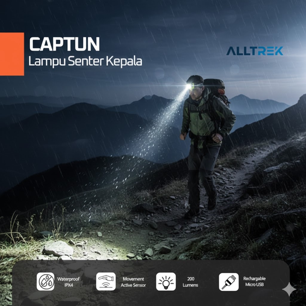 Alltrek Headlamplampu Kepala Captun Senter Kepala Hiking & Camping Led Portable Usb