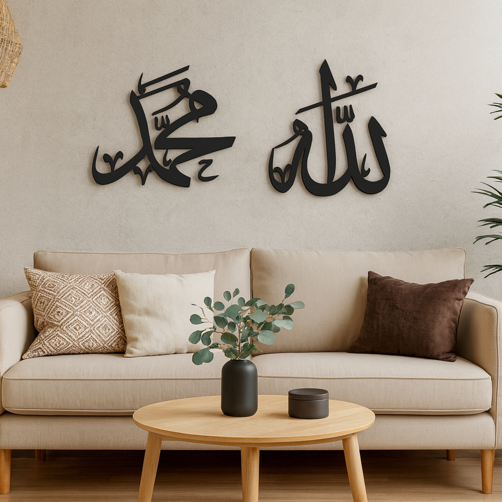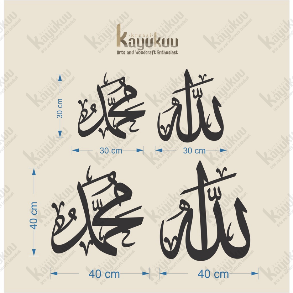 Kreasikayukuu Kaligrafi Set Allah Muhammad T30 T40– Hiasan Dinding Islami Estetik Cutting Plywood