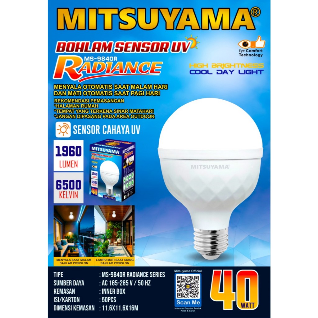 Bohlam Sensor UV Mitsuyama LED Bulb series Radiance 30 & 40 Watt