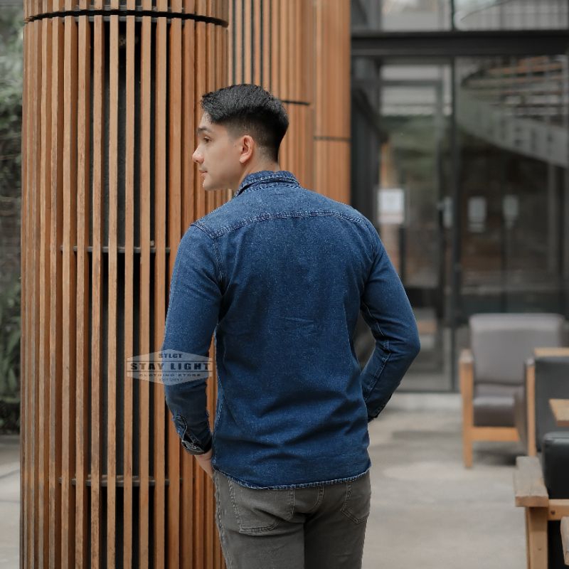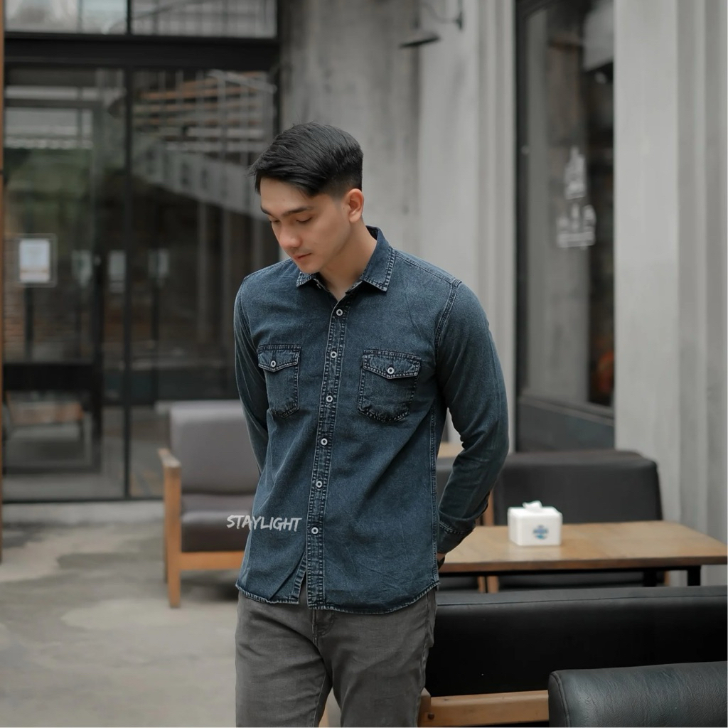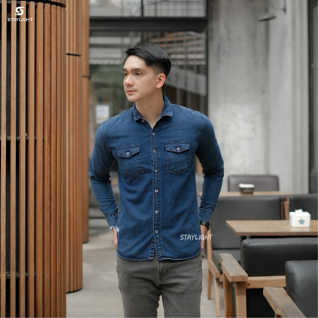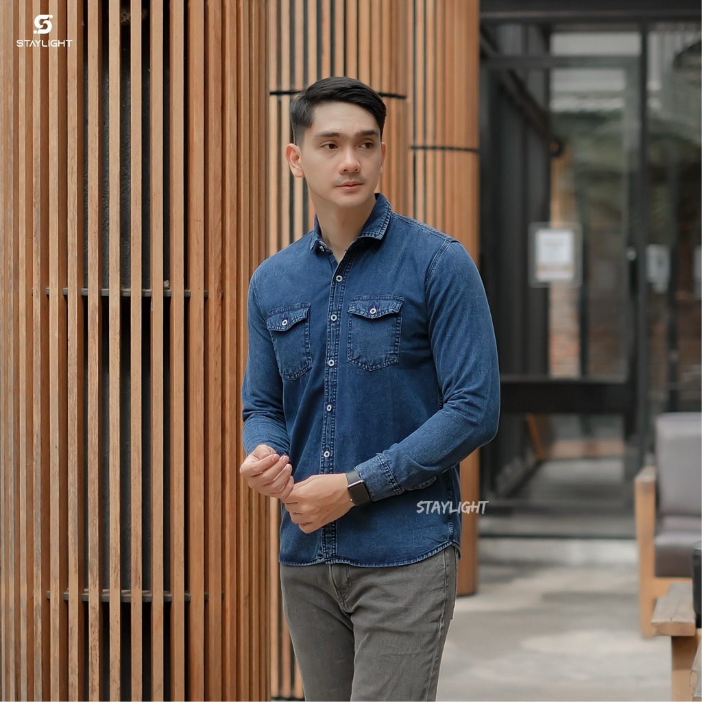 Staylight_ Kemeja Jeans Lengan Panjang Pria Denim Snow