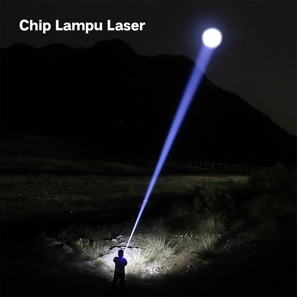 Senter Zoom Teleskopik Led Power Bank Laser Putih Super Terang 5 Mode Cahaya Tahan Air Waterproof Usb Type-C Charger Alu