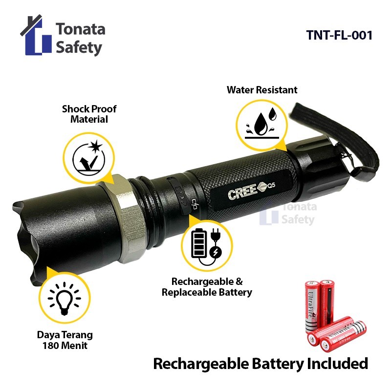 Tonata Senter Led Heavy Duty Flashlight Baterai Charger