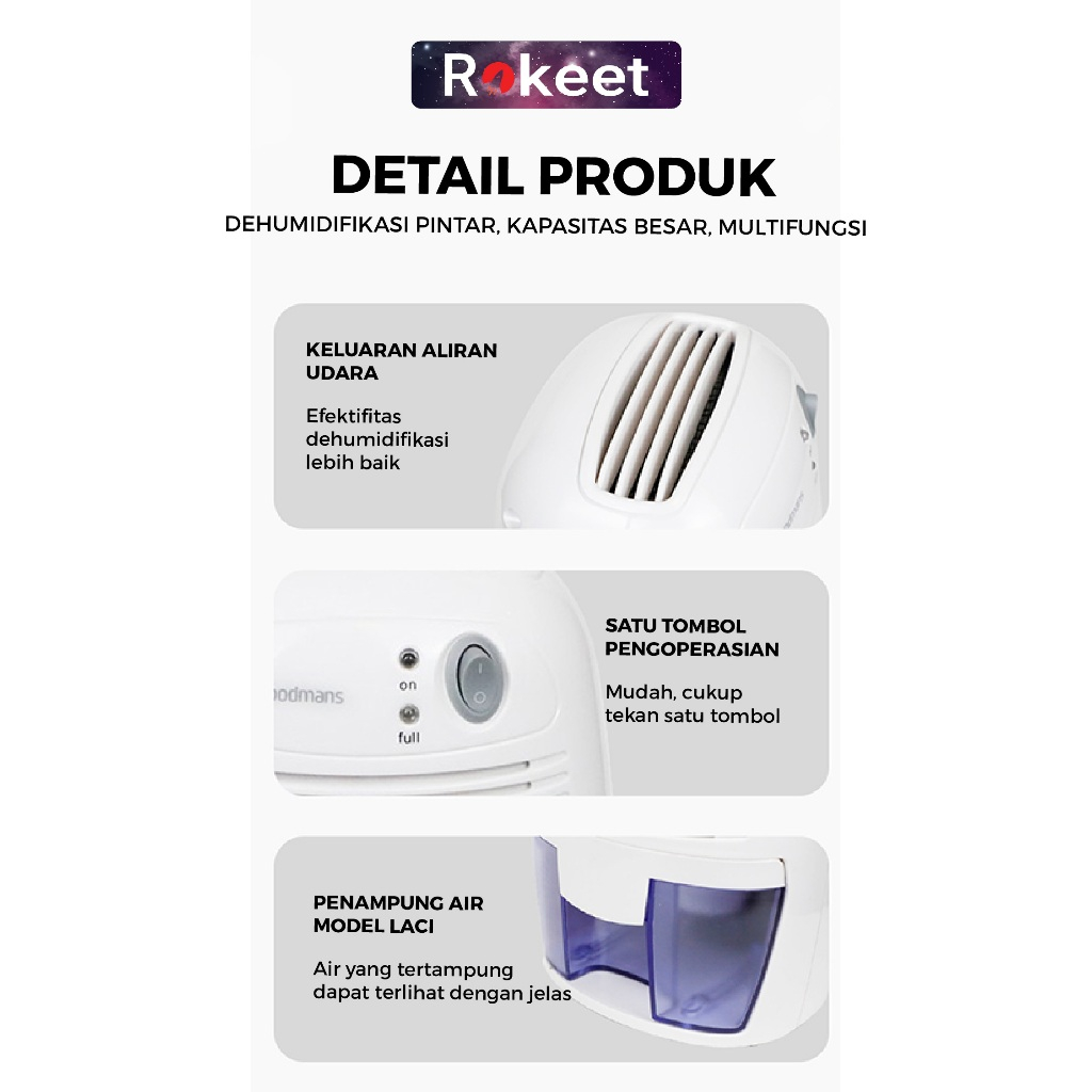 Rokeet Dehimudifier Air Drayer Penyerap Kelembaban Udara Ruangan Kamar Anti Jamur Kapasitas 500 Ml