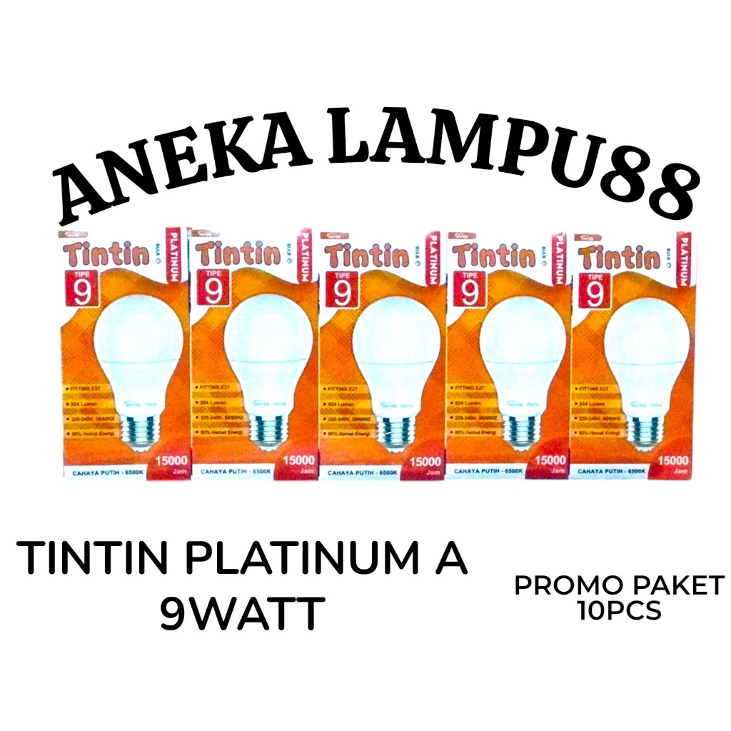 LAMPU TINTIN PLATINUM 9 WATT PAKET 10 PCS