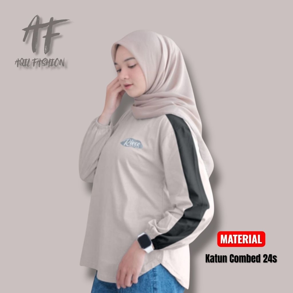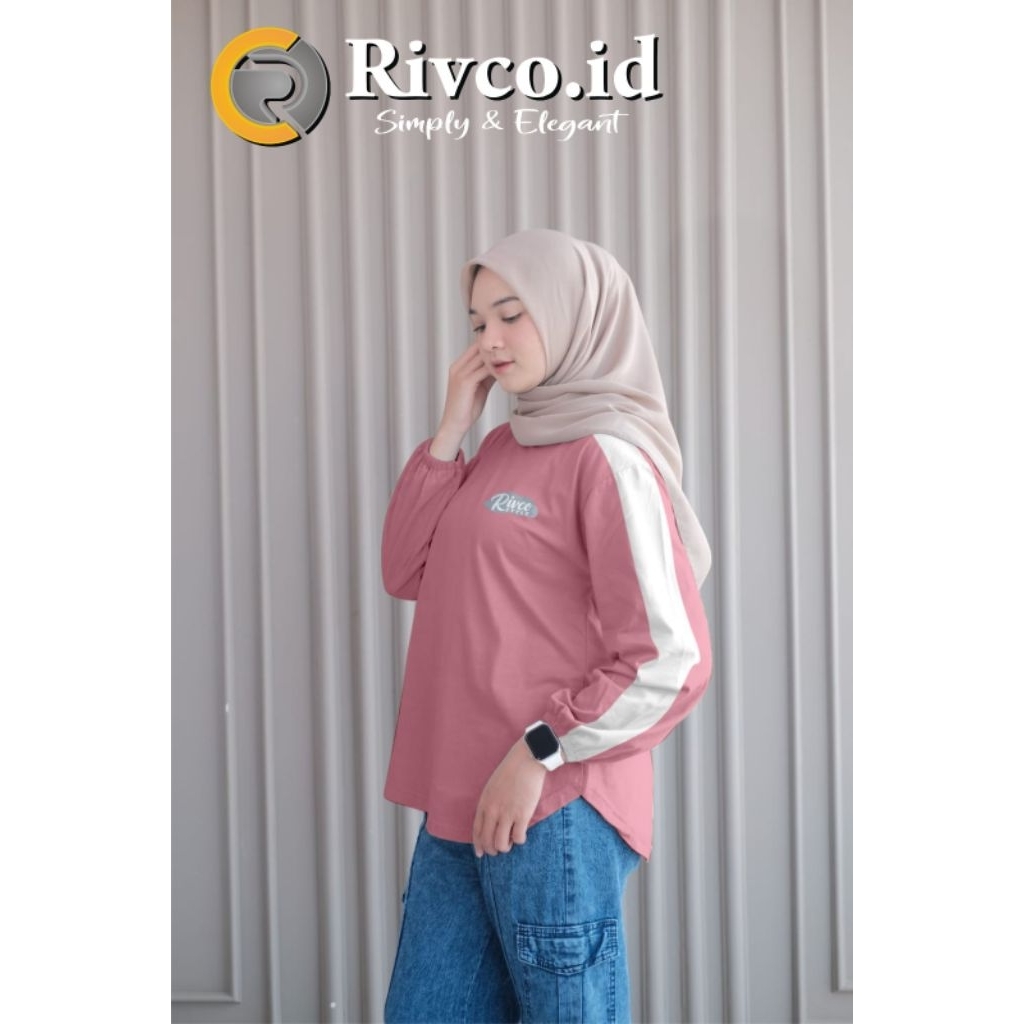 RIVCO Atasan Kaos Wanita Korean Style Baju Lengan Panjang Motif Stripe Murah Terbaru Murah Gratis Ongkir