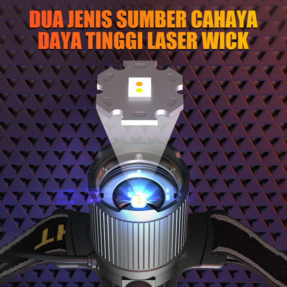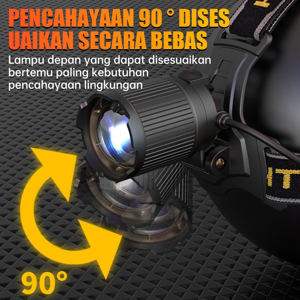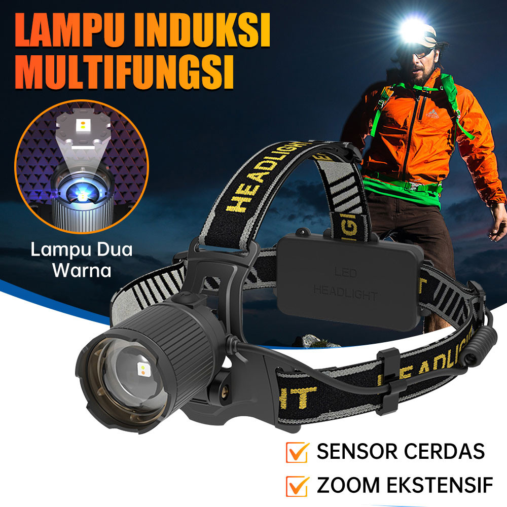 Senter Kepala Led Zoom Headlamp Senter Lampu Depan Sensor Usb Charging Senter 4 Mode Lampu Putih Dan Kuning