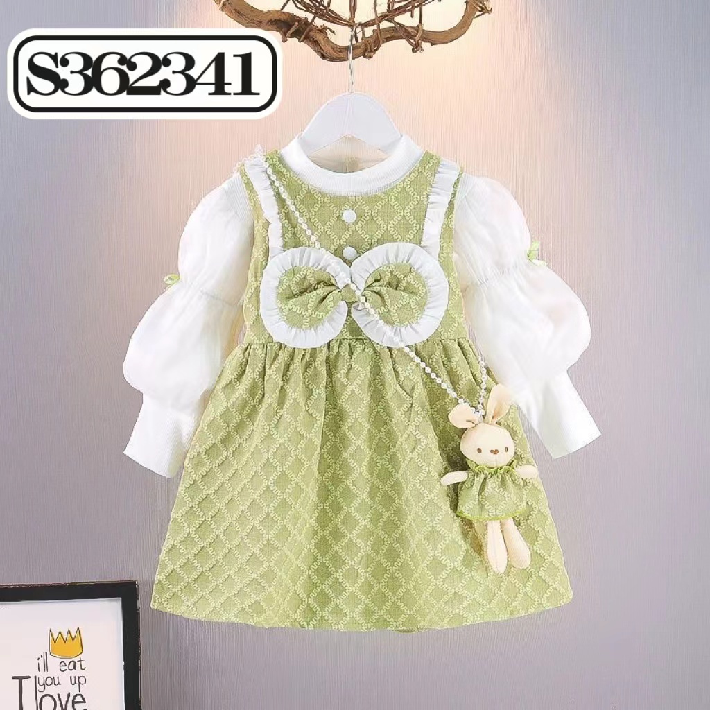 Dress Anak 6 Bln - 9 Thn Korean Style Gaun Dress Anak Perempuan Free Tas Boneka Usia 6 Bln - Tahun Sampai 9 Tahun Bahan