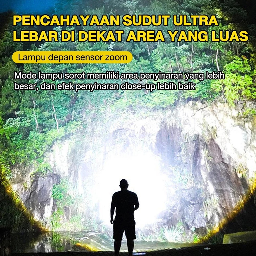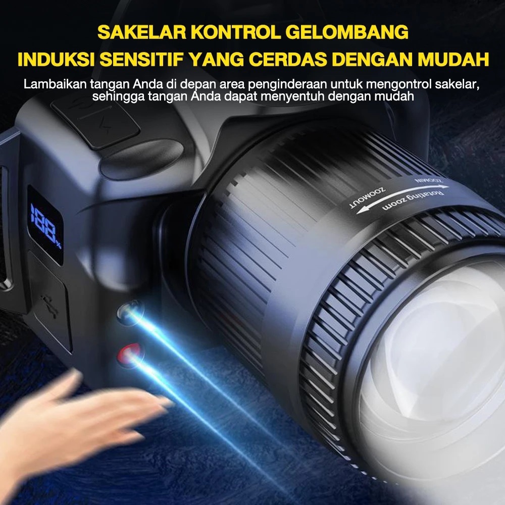 Headlamp Led Laser Cannon - Lampu Sorot Kepala Sensor Irama Tangan Zoom Rotasi Cob Side Light - Untuk Camping Fishing Hu