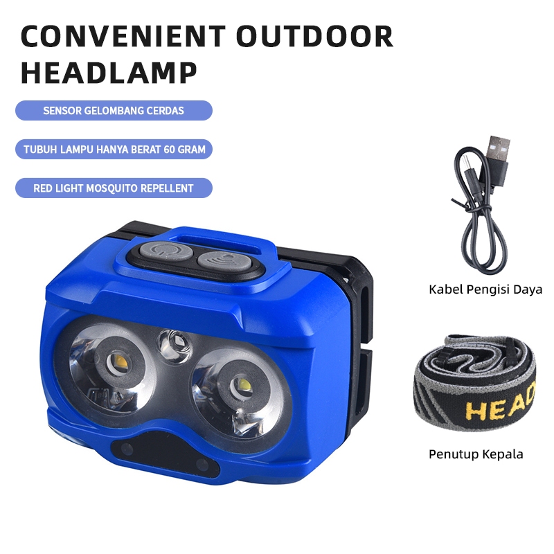 Headlamp Dengan Sensor Gerakan Tangan - Untuk Camping & Hiking