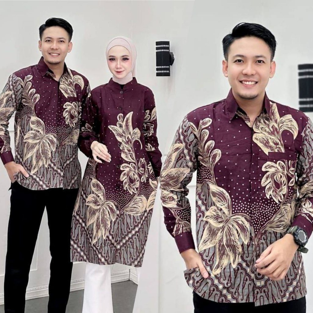 Batik Tunik Couple Modern Set Pakaian Couple Kemeja Batik Pria Panjang Atasan Batik Couple Terbaru
