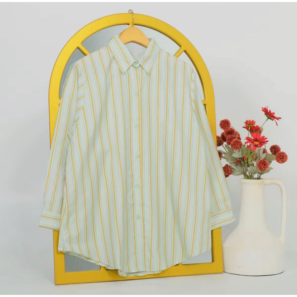 claire kemeja salur garis katun miracle atasan wanita lengan panjang jumbo Murah Gratis Ongkir