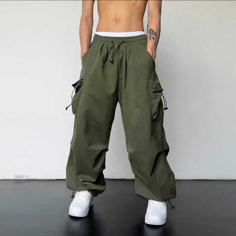 Celana Cargo Pria Panjang Model Terbaru High Waist Korean Stail Casul Tali Serut Pinggang Karet