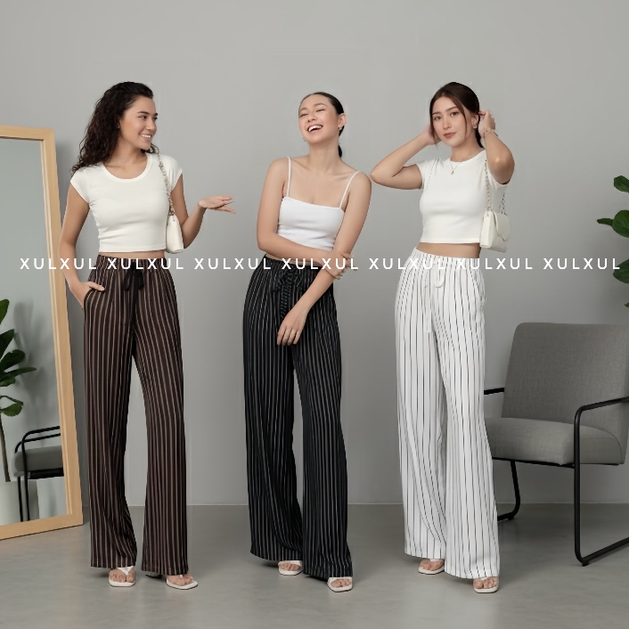 Everyday Pants - Stripe Pants Bangkok - Celana Panjang Wanita Baggy Kantor Kuliah Motif Garis Kulot Pinstripe - Celana F