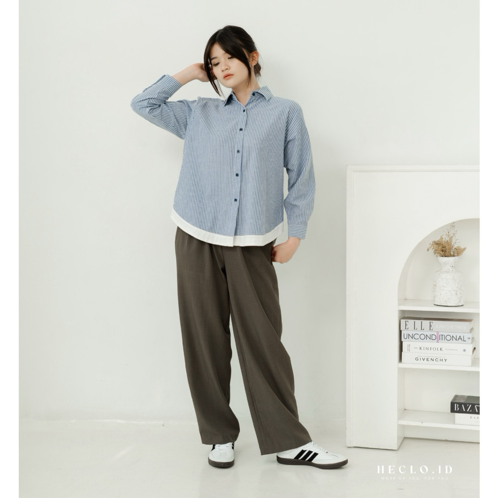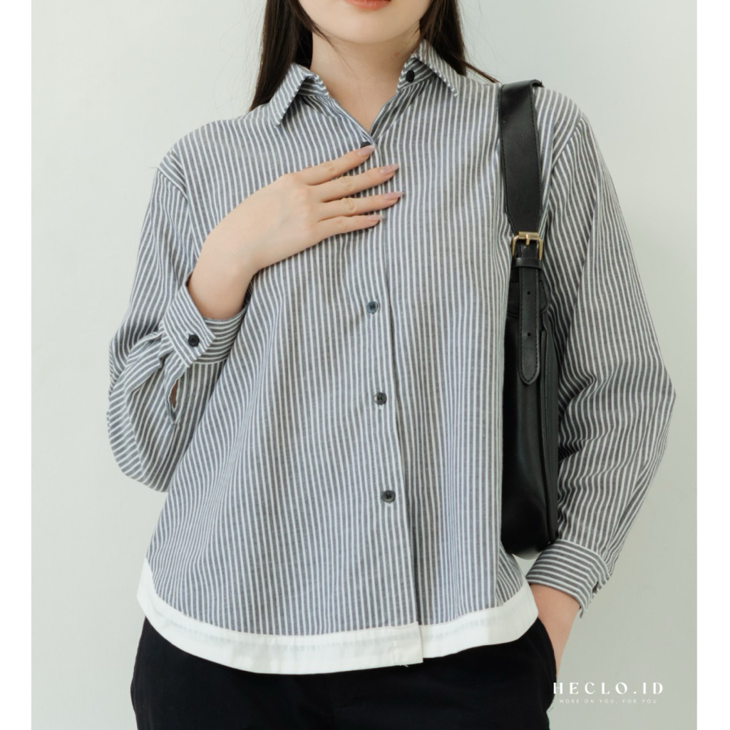 Maple Stripe Shirt Atasan Wanita Kemeja Wanita Murah Gratis Ongkir