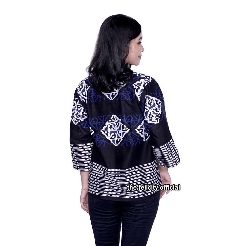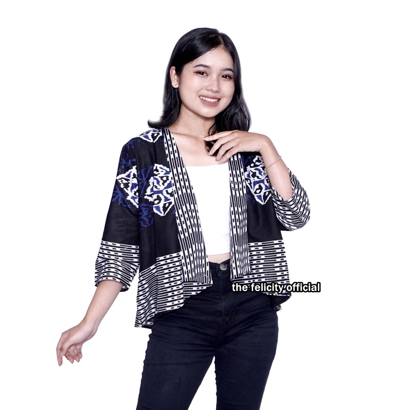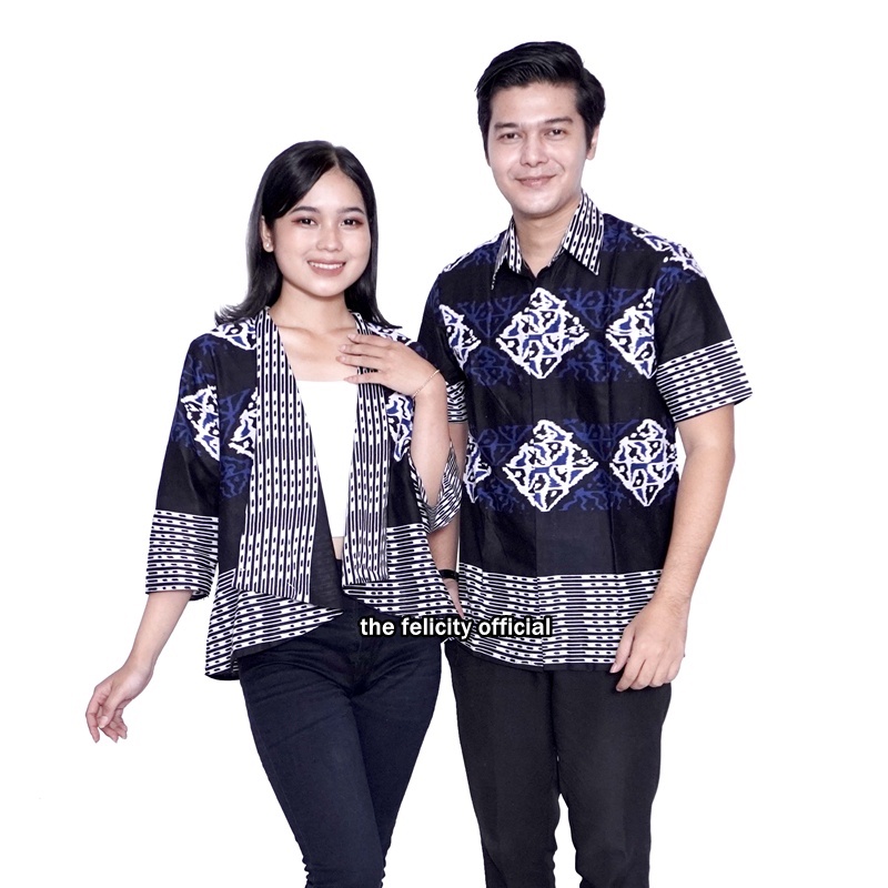 Felicitybatik - Batik Couple Bolero Atasan Wanita Simple Dan Hem Kemeja Pria Garis Brazil Blazer Batik Viral