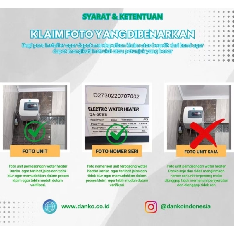 Water Heater | Pemanas Air Mandi | Danko DA-15ES Listrik 15 Liter | Garansi Resmi