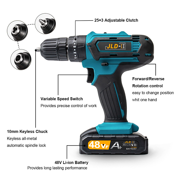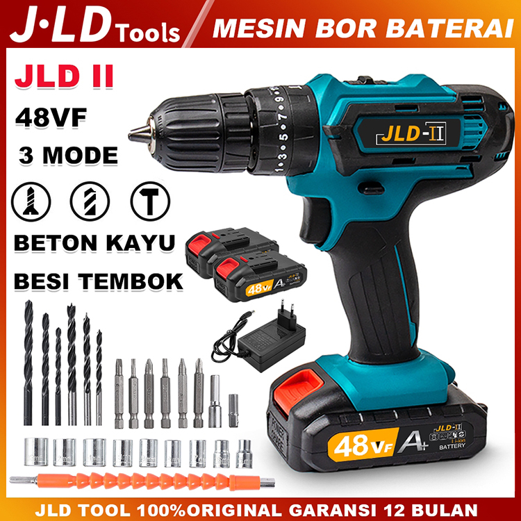 JLD II 48VF Mesin bor baterai bor 10MM bor Impact listrik bor cordless murah Bor cas/3Mode-bor Impact obeng/bor tembok b