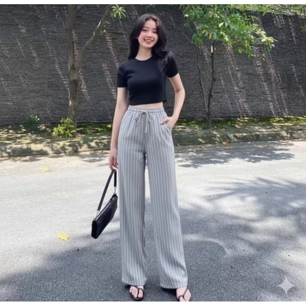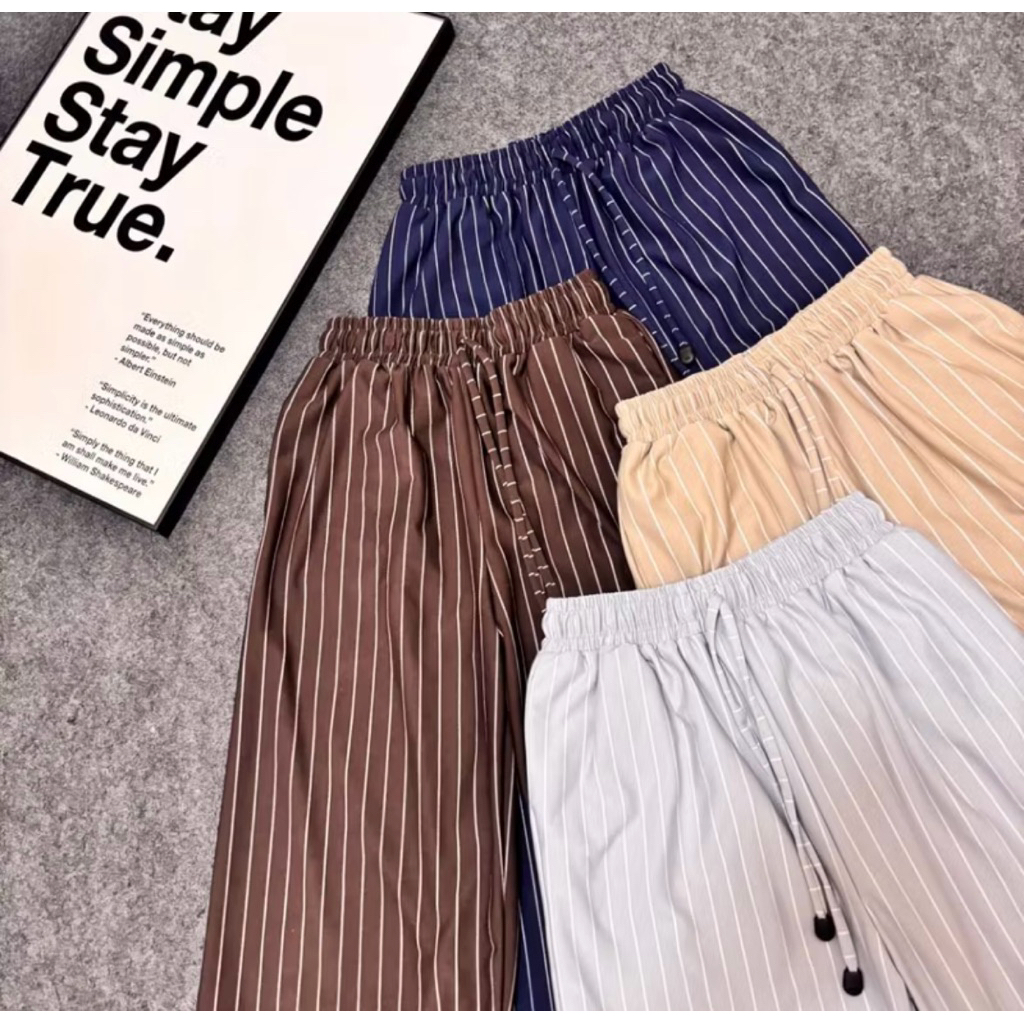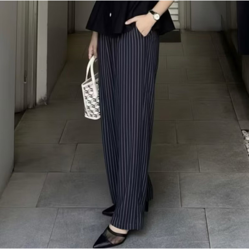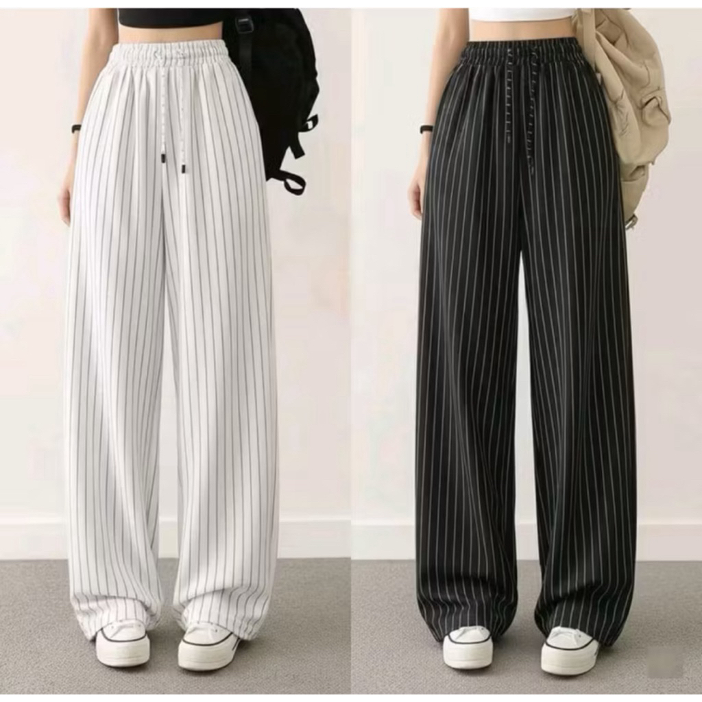 Everyday Pants - Stripe Pants Bangkok - Celana Panjang Wanita Baggy Kantor Kuliah Motif Garis Kulot Pinstripe - Celana F
