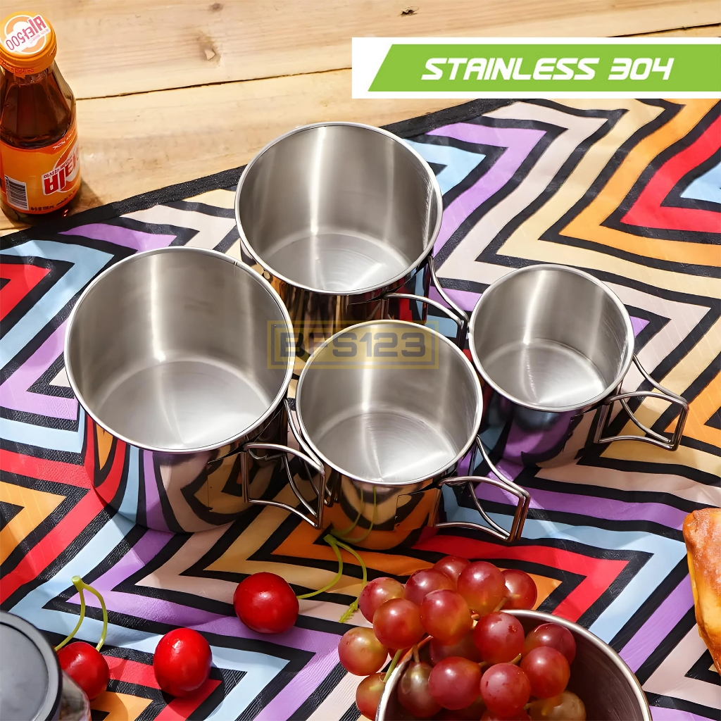 Set Mug Gelas Kopi Teh Air Minum Camping Isi 4 Pcs Plus Pouch Bag 220 Ml 330 Ml 500 Ml 660 Ml