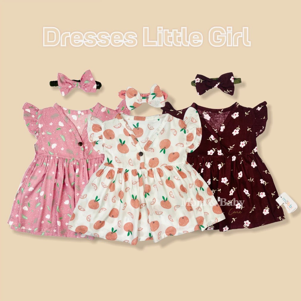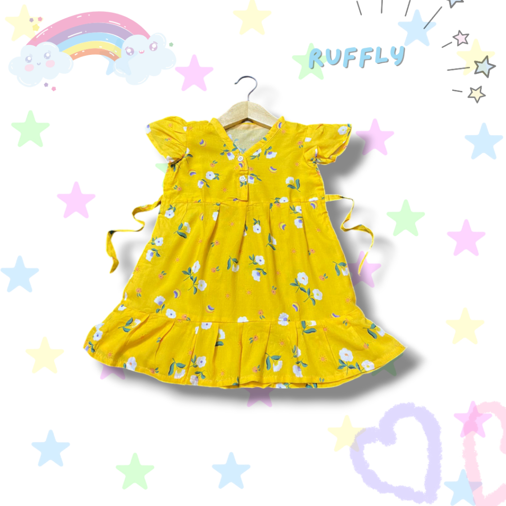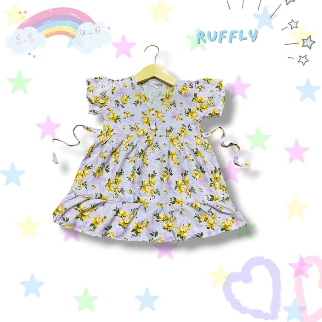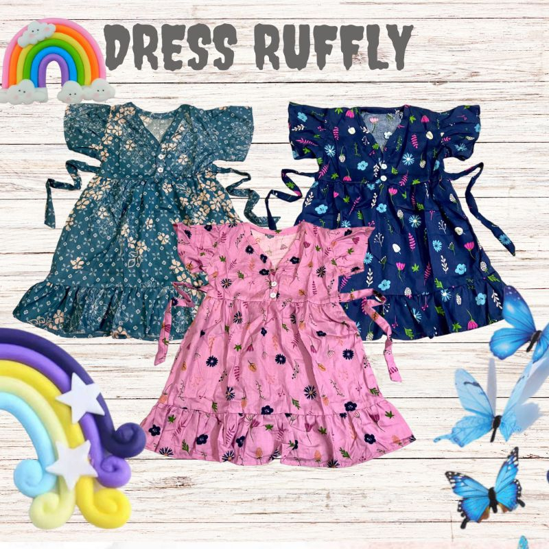Paket 4 Pcs Dress Ruffly 0-6Th Baju Anak Perempuan Harian Dress Murah Viral Rayon Tidur Bayi